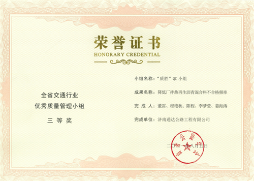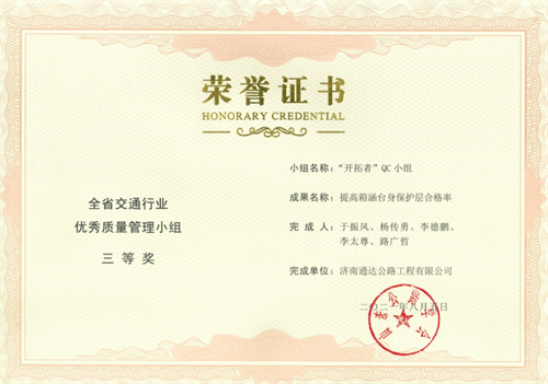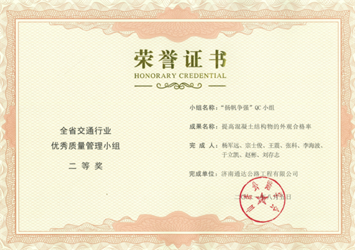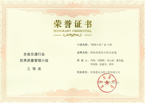其中,榮獲全省交通行業(yè)優(yōu)秀質(zhì)量管理小組二等獎2項(xiàng),三等獎5項(xiàng);榮獲山東省優(yōu)秀質(zhì)量管理小組三等獎2項(xiàng),突破公司歷年獲獎成果新高,QC活動質(zhì)量持續(xù)提升。